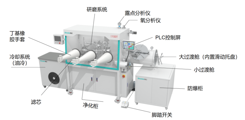 硫化物固态电解质对环境极为敏感,研磨中易因氧化、水解失效,给研发和生产带来挑战。博亿手套箱密封集成砂磨机,专为这类材料提供全流程解决方案。01水氧敏感,材料易氧化水解硫化物固态电解质对水氧高度敏感,在传统环境下研发或生产,极易发生氧化、水解,导致材料性能大幅衰减。图为:博亿手套箱密封集成砂磨机博亿设